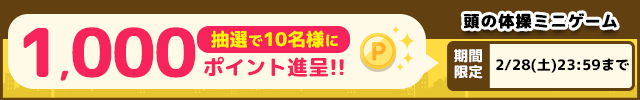 期間中に頭の体操ミニゲームを150回以上プレイ(プレイ=スタンプ獲得)した方の中から抽選でポイントを進呈